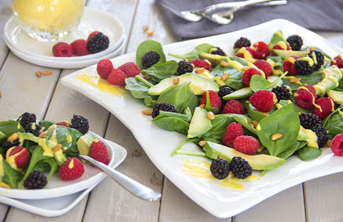 Anti-Aging Avocado Berry Salad Mango Vinaigrette