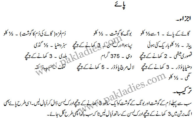 Beef or Lamb Paye Trotters: English – Urdu Recipe