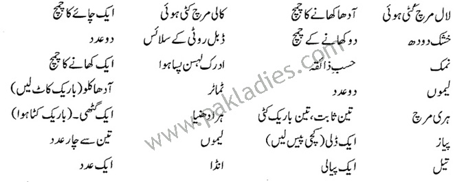 11. Green chilies – 3 thinly chopped