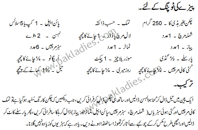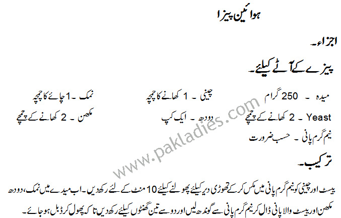 Hawaiian Pizza: Urdu – English Recipe
