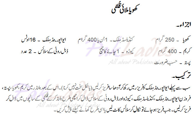 Home Recipes In Urdu - English Desserts Khoya Mawa Malai Kulfi: English – Urdu Recipe