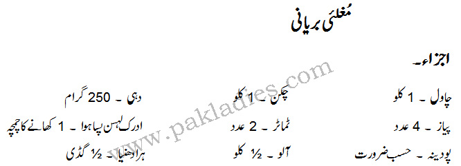 Mughlai Biryani: English – Urdu Recipe
