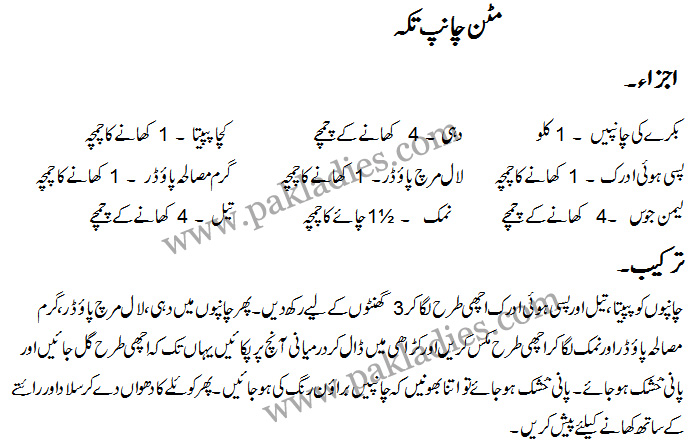 Mutton Chops Tikka: English – Urdu Recipe