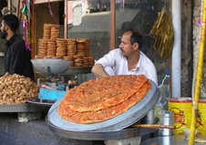 Katlama is a typical traditional Lahori snack usually available in festival season. Any where you go and you will definitely find about 2 feet diameter fried a big chapatti with strange coating on it and it is one of the delicious snacks of Lahori Halwai.