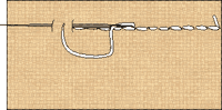 • Work from right to left with a single thread fastened with a knot hidden inside the hem.