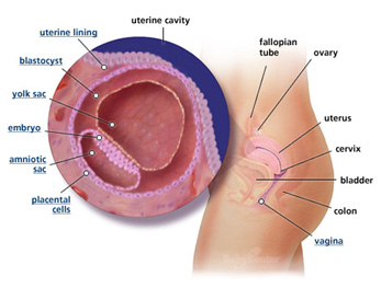 Once inside the womb it attaches itself to the nutrient-rich wall, where it splits into two. One part will form the embryo and the other the placenta.